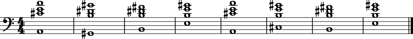 ['C#3', 'B3', 'E4', 'G#4'], # C sharp minor over 7