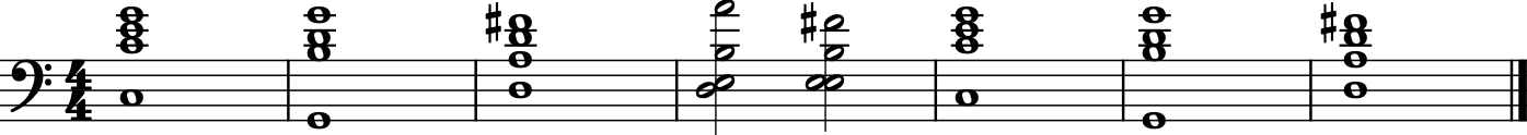 (['C3', 'C4', 'E4', 'G4'], 'whole'), # C major