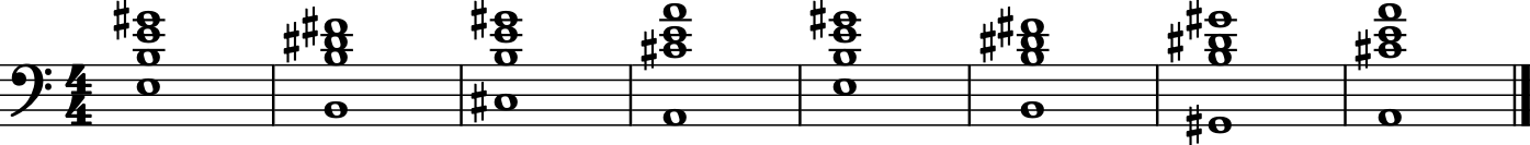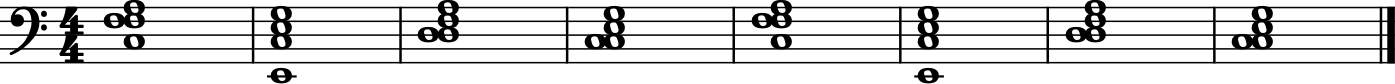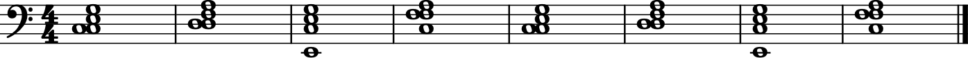 (['E2', 'G3', 'C3', 'E3'], 'whole'), # C major over E.