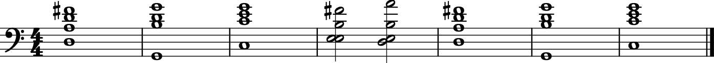 (['D3', 'A3', 'D4', 'F#4'], 'whole'), # D major