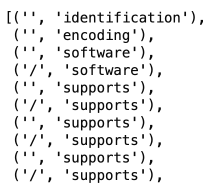 XML parsers utilize the stack structure because of the requirement that they are properly nested and have a closing tag. In XML, the word between the angle brackets is called a “tag name” because it identifies what type of element it is. Here is an example of the MusicXML language: